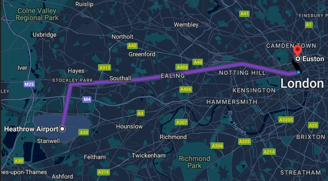Direct train line from the heathrow airport with the elizabeth line (£ 14 ticket)