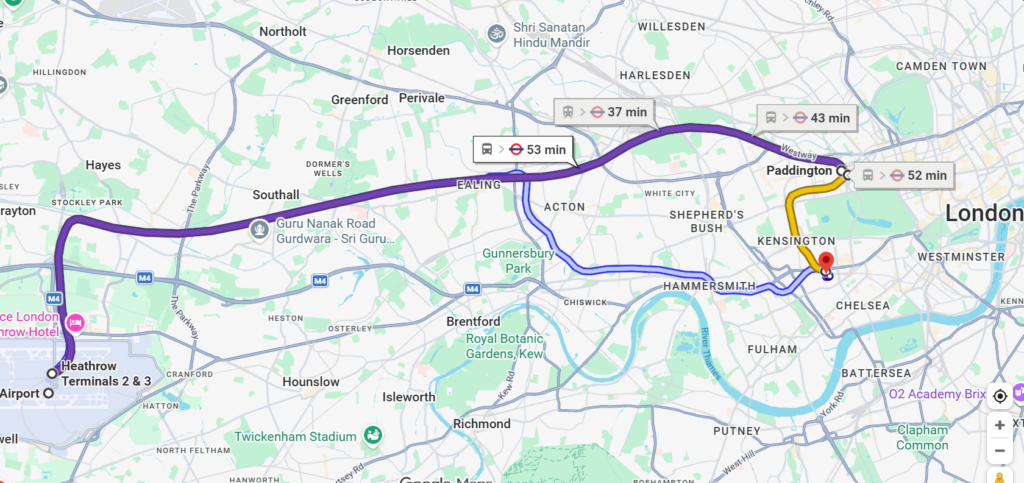 Direct train line from the heathrow airport with the elizabeth line (£ 14 ticket)